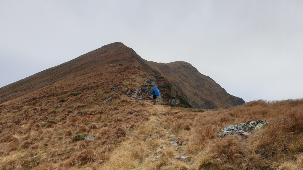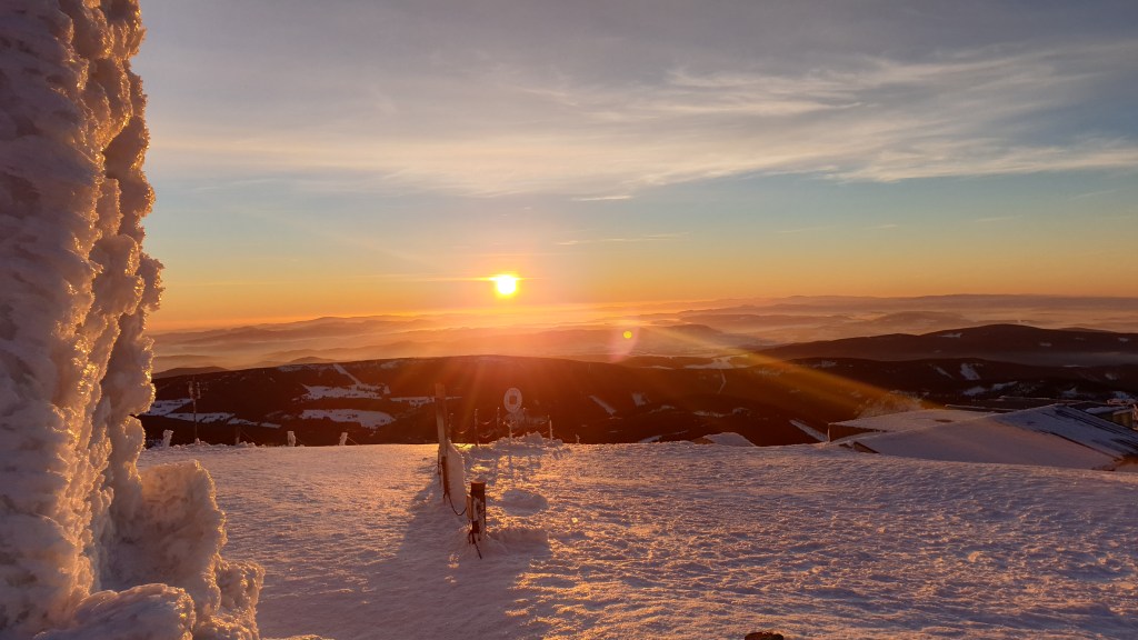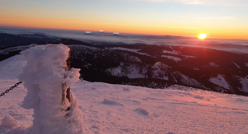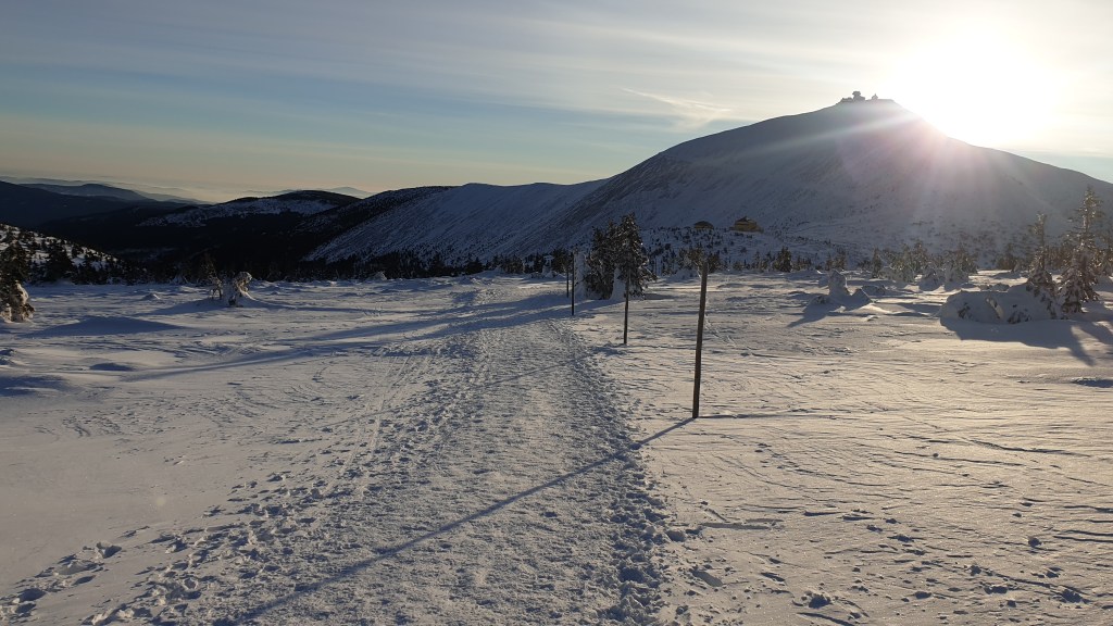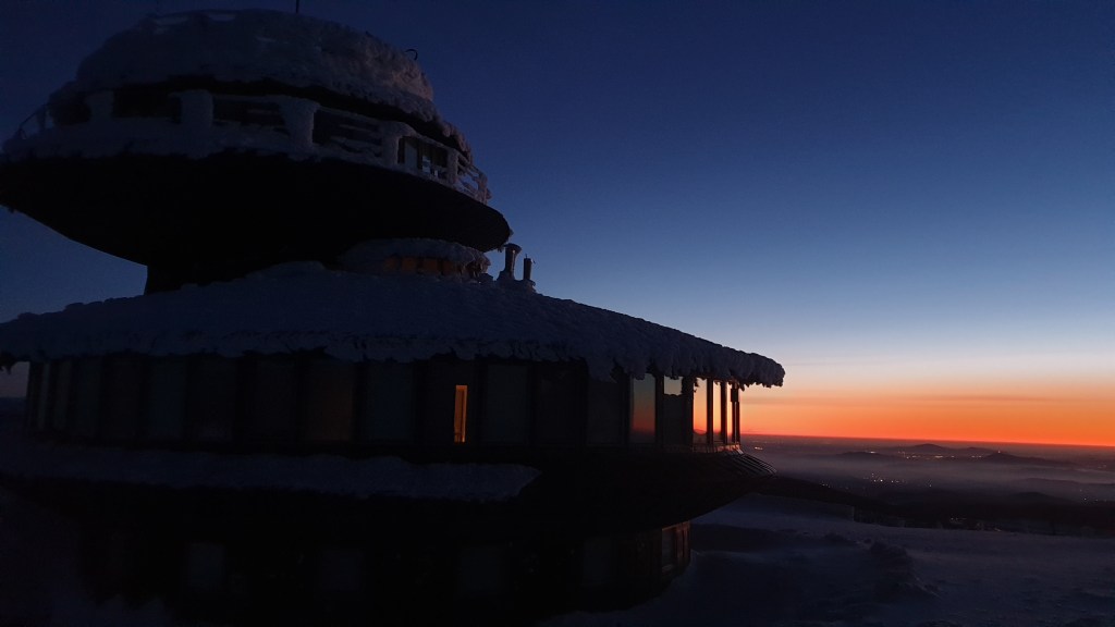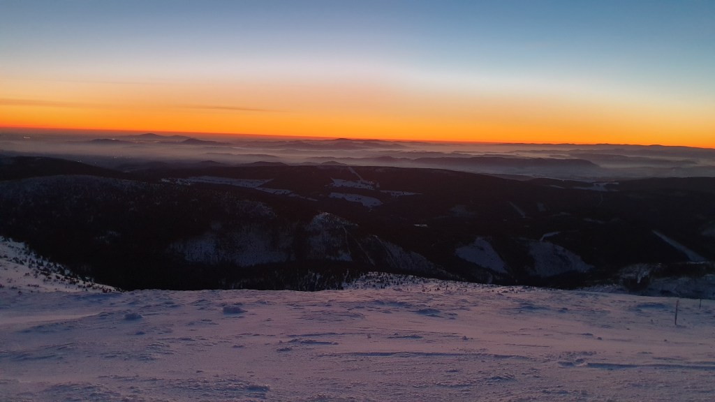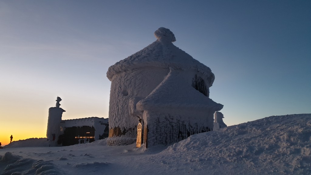 Mijają pierwsze godziny, a my idziemy ciągle we mgle. Prognozy są nieciekawe. W południe na moment podnoszą się chmury ukazując nam początek grani, którą będziemy szli kilka dni. Podchodzimy na szczyt Ineut 2279m, zaczyna padać marznący deszcz, a pod butami pojawia się śnieg, dzieła dopełnia silny wiatr. Jesteśmy już zmęczeni, 20 kilogramowe plecaki zaczynają nas wbijać w ziemie. Na 18 kilometrze znajdujemy schron, w którym zostajemy na noc.