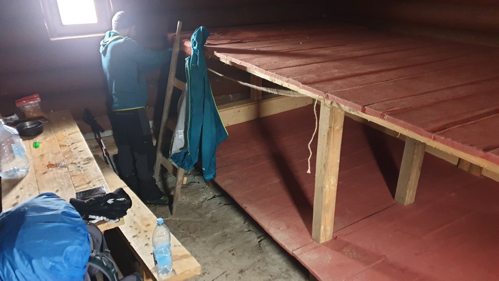 Tego dnia przechodzimy tylko 12km i nocujemy w kolejnym schronie. Okazuje się on całkiem wygodnym domkiem. Wszystko mamy mokre, do tego kompletnie przemoczone buty i bez szans na to, że do rana coś przeschnie; w schronie jest ok 10 st.C. Już po 17.00 pakujemy się w śpiwory i próbujemy się rozgrzać, pierwszy raz żałujemy, że nie zabraliśmy ze sobą odrobiny dobrej, rumuńskiej palinki.